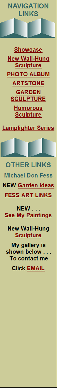 Michael Don Fess, born in Haynesville, LA but grew up in Magnolia, AR. He earned a degree in physics from Centenary College in 1958 and went on to a career in Real Estate Development in Shreveport, LA for over thirty-five years. An artist most of his life, he enrolled six others and they founded the Red River Sculpture Society in 1994 and he has been its chairman ever since. Michael was inducted into the regional Sculpture Hall of Fame in 1998 and helped found the regional Visual Arts Hall of Fame in 1999. He moved to Little Rock, AR in 2001 where he has served on the board of the Arkansas League of Artists, been a member of the Arkansas Sculpture Guild, and created a gallery at his residence. He became a Master Gardener in 2006 in order to focus on his unique garden sculpture. He did his volunteer work at Wildwood Park for the Arts. The garden at his residence on the Little Rock Garden Tour in 2008 and his garden sculpture led him to be elected 2010 Chairman of the Central Arkansas Horticultural Society . He has been married to Sue Wilson Fess, his childhood sweetheart, for over sixty years. They raised four children and have fourteen grandchildren. His new books have just been released at SmashWords . . . Check them out !